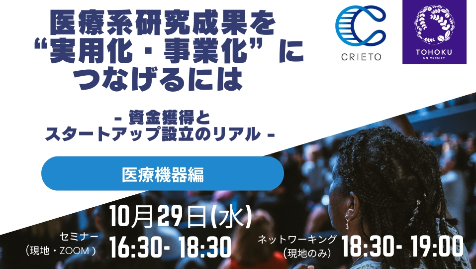 10/29(水) 医療系研究成果を”実用化・事業化”につなげるには ー資金獲得とスタートアップ設立のリアルー